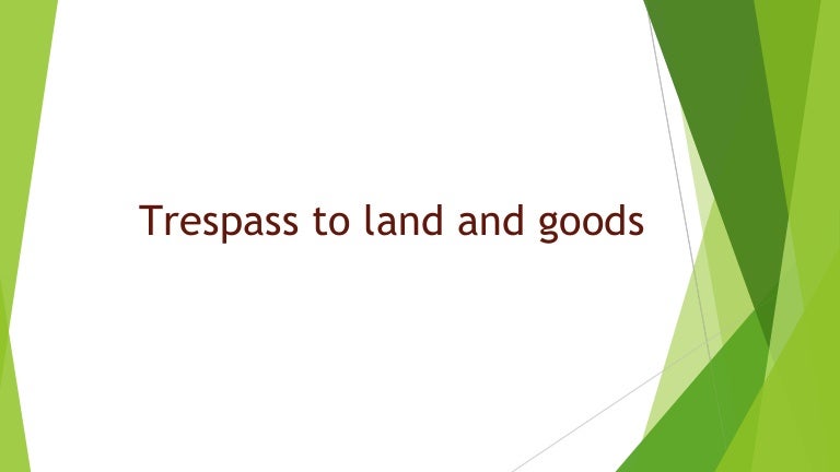 Trespass to land, called trespass quare clausum fregit means the interference with the it was held in the case of onasanya vs emmanuel that trespass to land is committed where the defendant. Objects or structures overhanging land: Trespass to land is a common law tort or crime that is committed when an individual or the object of an individual intentionally (or, in australia, negligently) enters the land of another without a lawful excuse. Study flashcards on trespass to land at cram.com. Neither malicious intent nor knowledge of one's actions is necessary to commit the crime of trespassing.